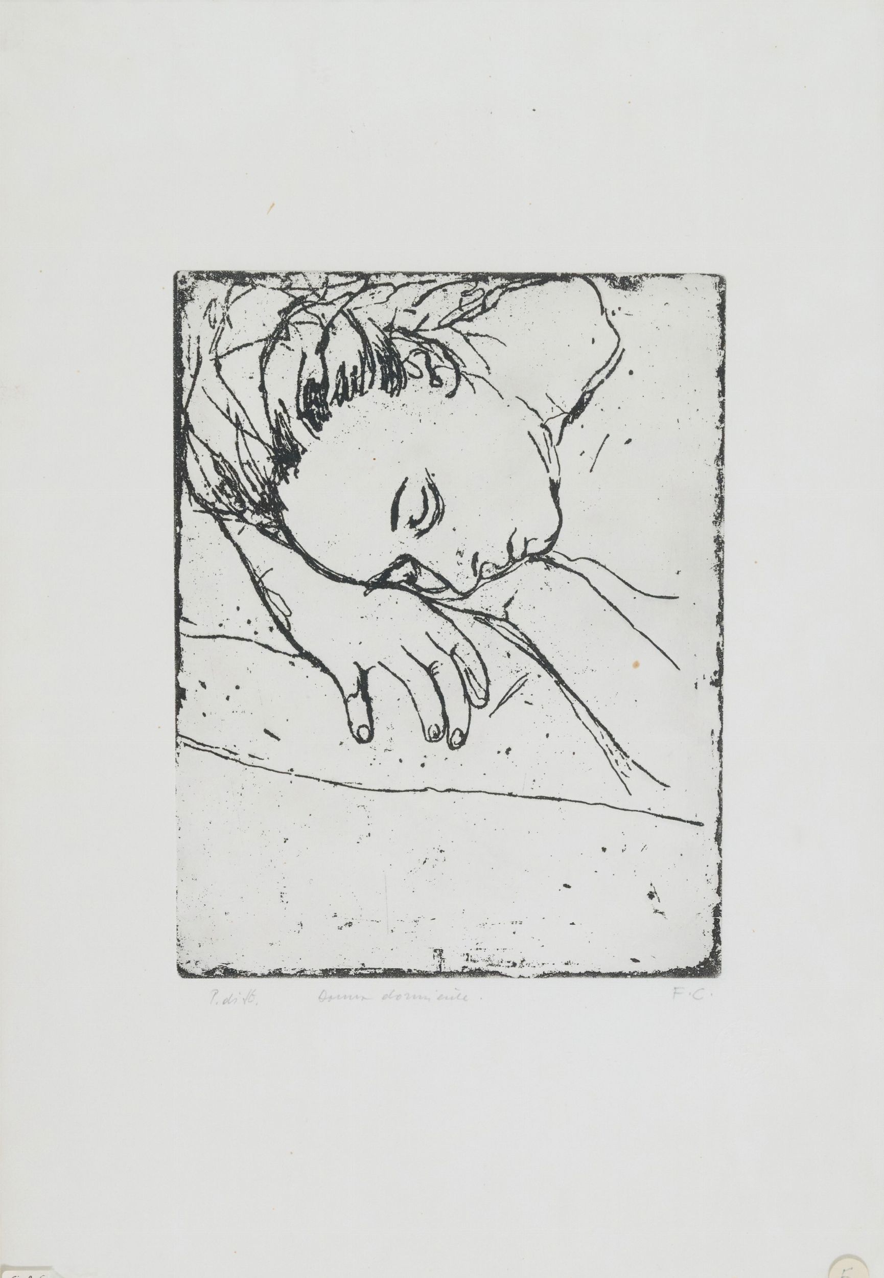Sigla e timbro a secco Atelier Casorati in basso a destra, titolo e tiratura in basso a sinistra.