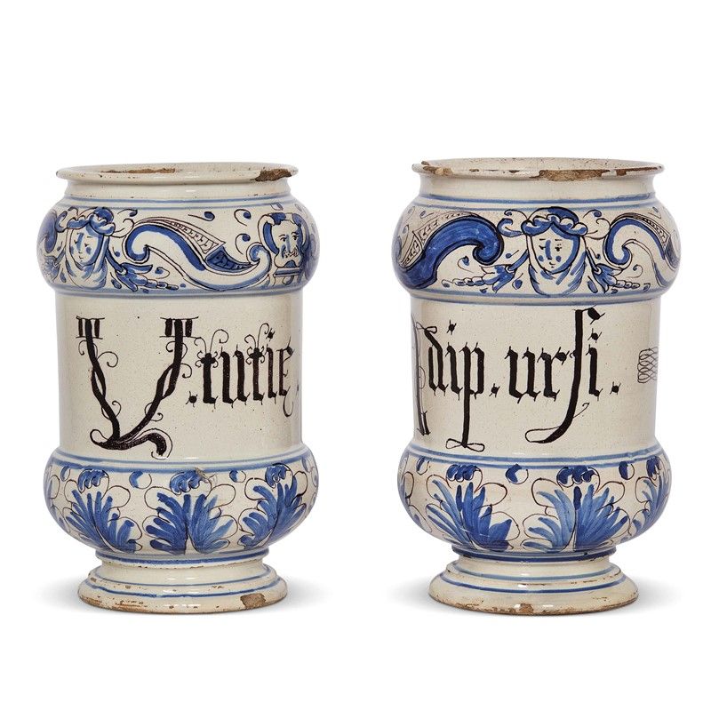 A PAIR OF PHARMACY JARS (ALBARELLI), BASSANO, LAST QUARTER 17TH CENTURY