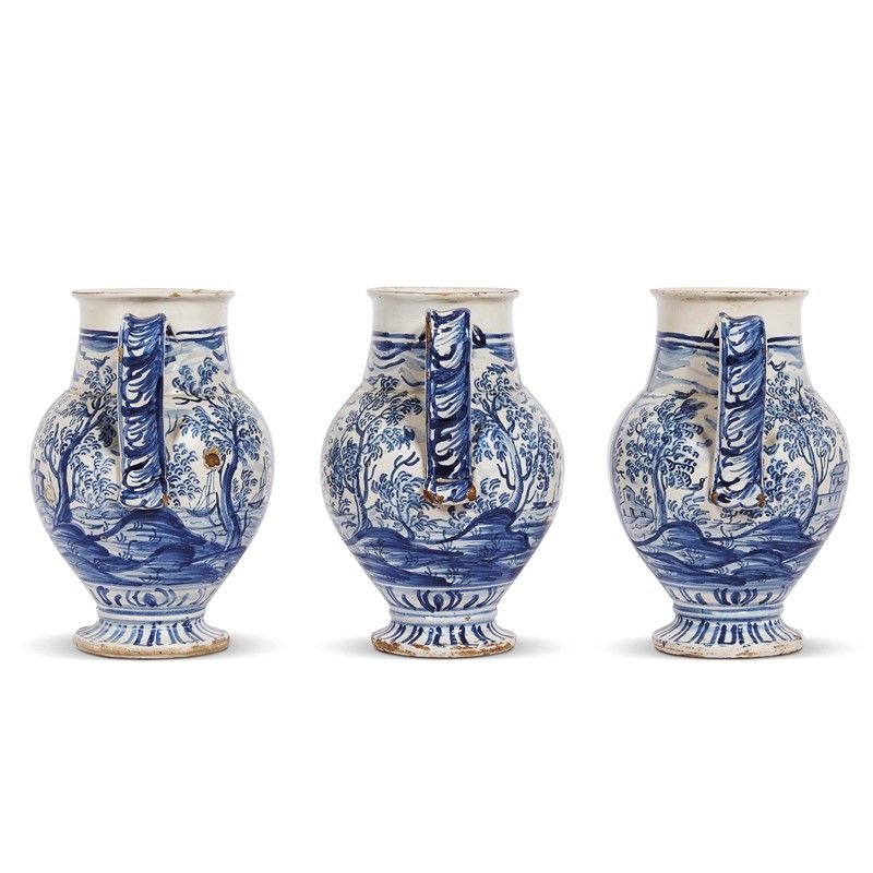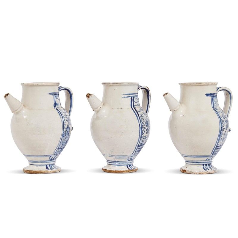 THREE SPOUTED PHARMACY JARS, TORRE DEI PASSERI, 18TH CENTURY