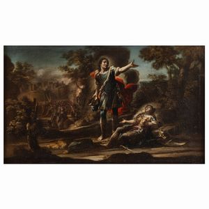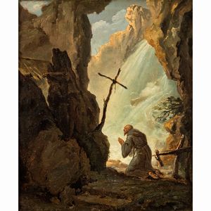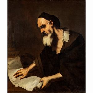 87x71 cm. XVII Sec San Girolamo scrivente, olio su tela, entro cornice