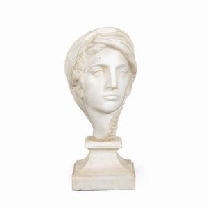 25x25x10 cm. XX Sec. scolpito a raffigurare un cavaliere orientale, poggiante su base sagomata in legno