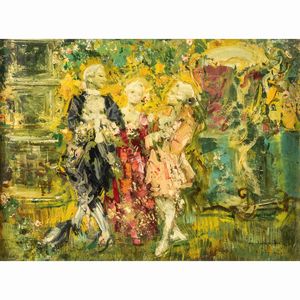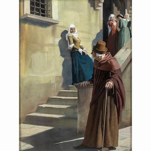 37x55 cm. Pontremoli 1885 - Roma 1966 Scena galante a Venezia, acquerello su carta, firmato in basso a destra, [..]