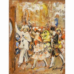 13x10 cm. Napoli 1858 - 1938 Carnevale, olio su tavola, firmato in basso a destra, entro cornice