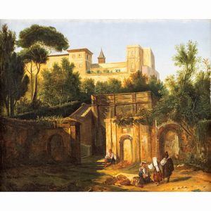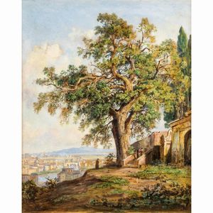 37,5x46 cm. Parigi 1795 - 1875 Veduta di Villa d'Este, olio su tela, entro cornice Provenienza: Sotheby's Parigi, [..]