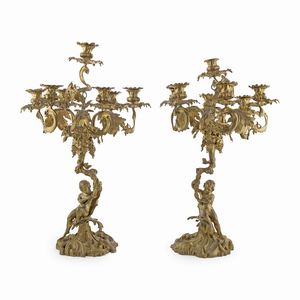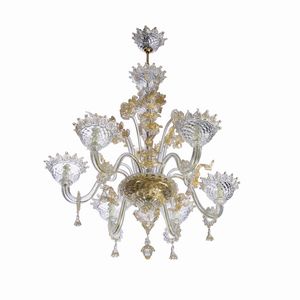 100x80 cm. XX Sec. in vetro trasparente con inclusioni in oro, bracci mossi, fusto tornito con decorazioni floreali [..]