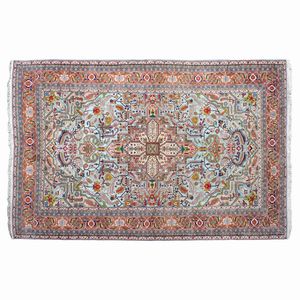 196x300 cm. Iran XX Sec. disegno floreale, vegetale e geometrico su fondo multicolor