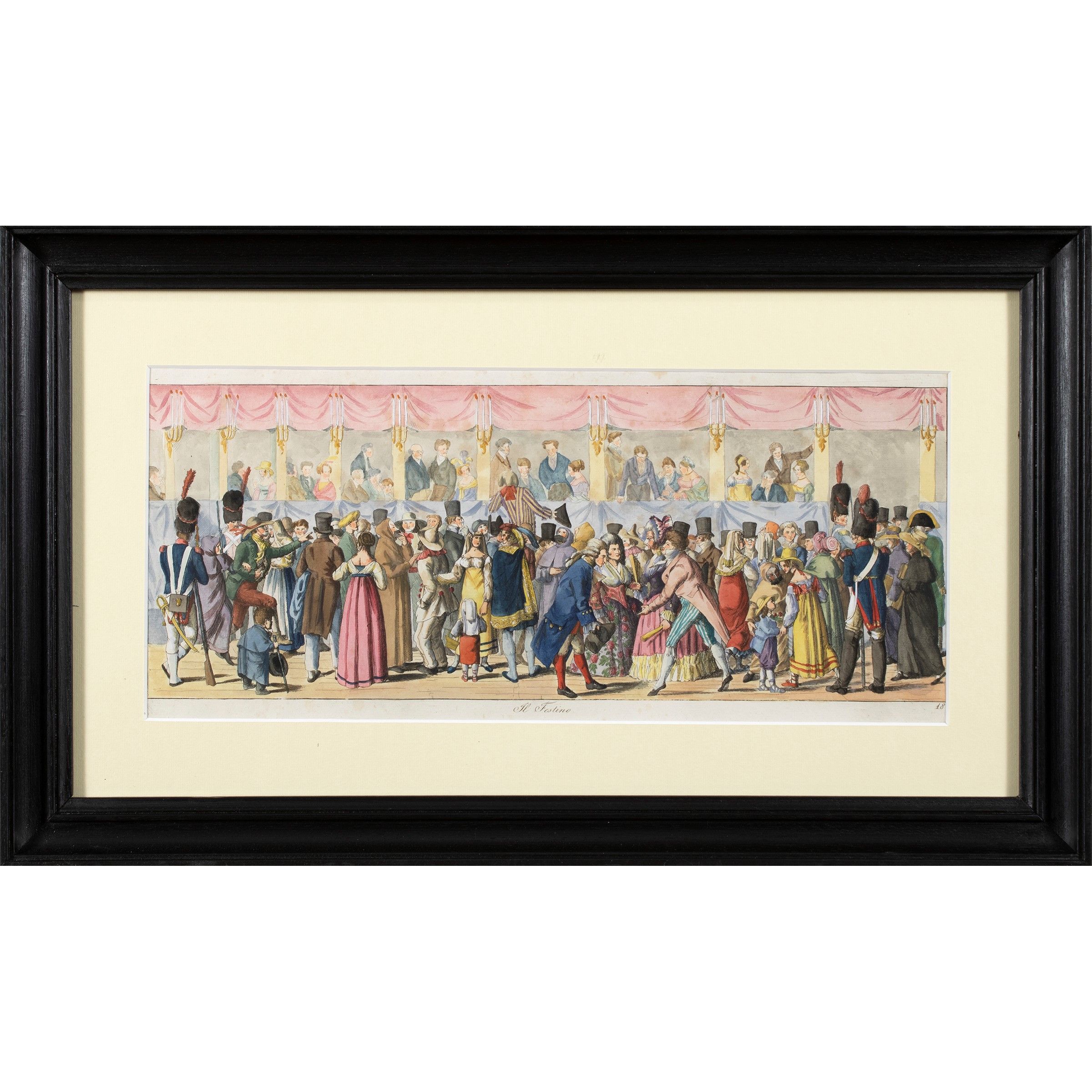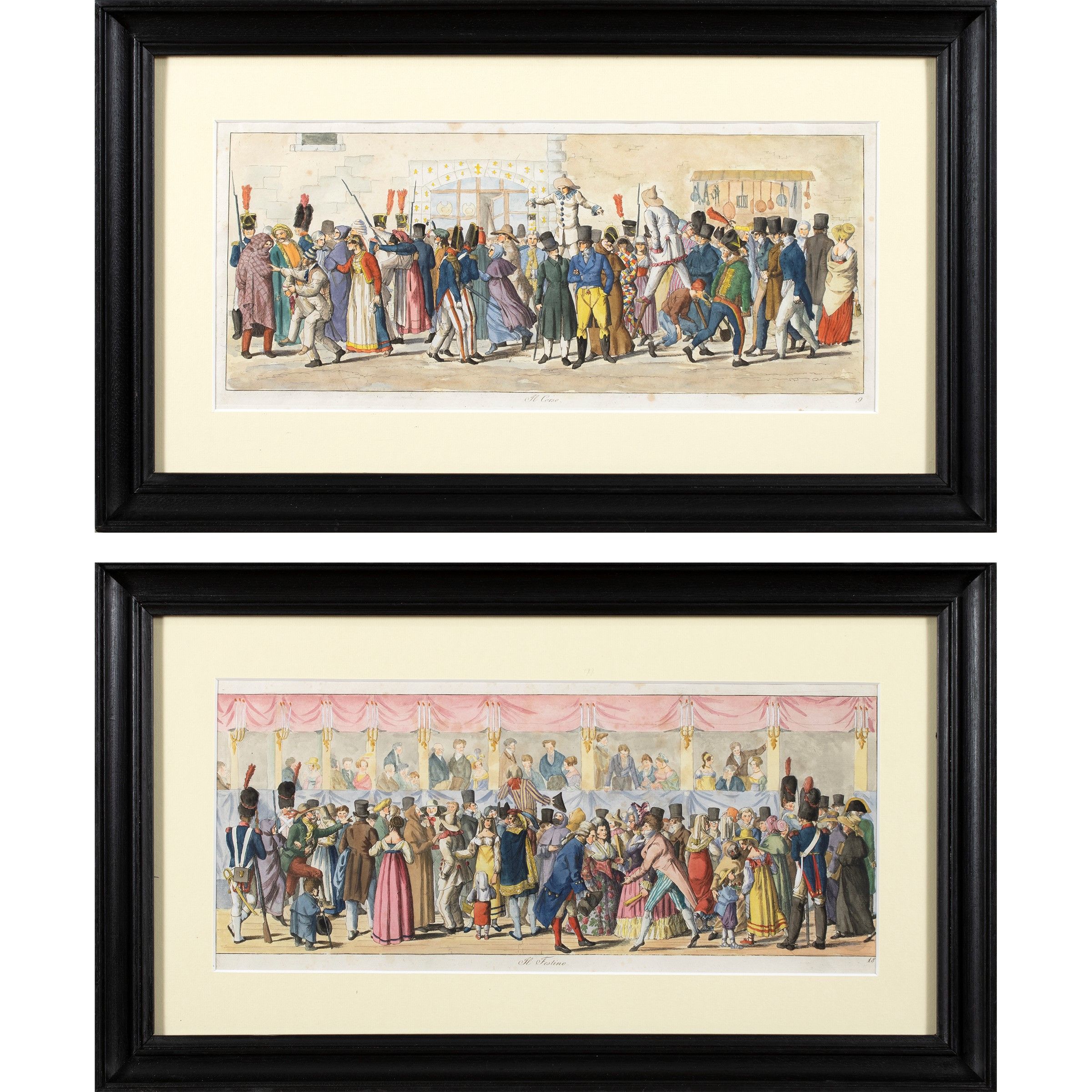 Stoccolma 1794 - Parigi 1837 Il Corso - Il Festino, 1820, coppia di acqueforti acquarellate, entro cornici
