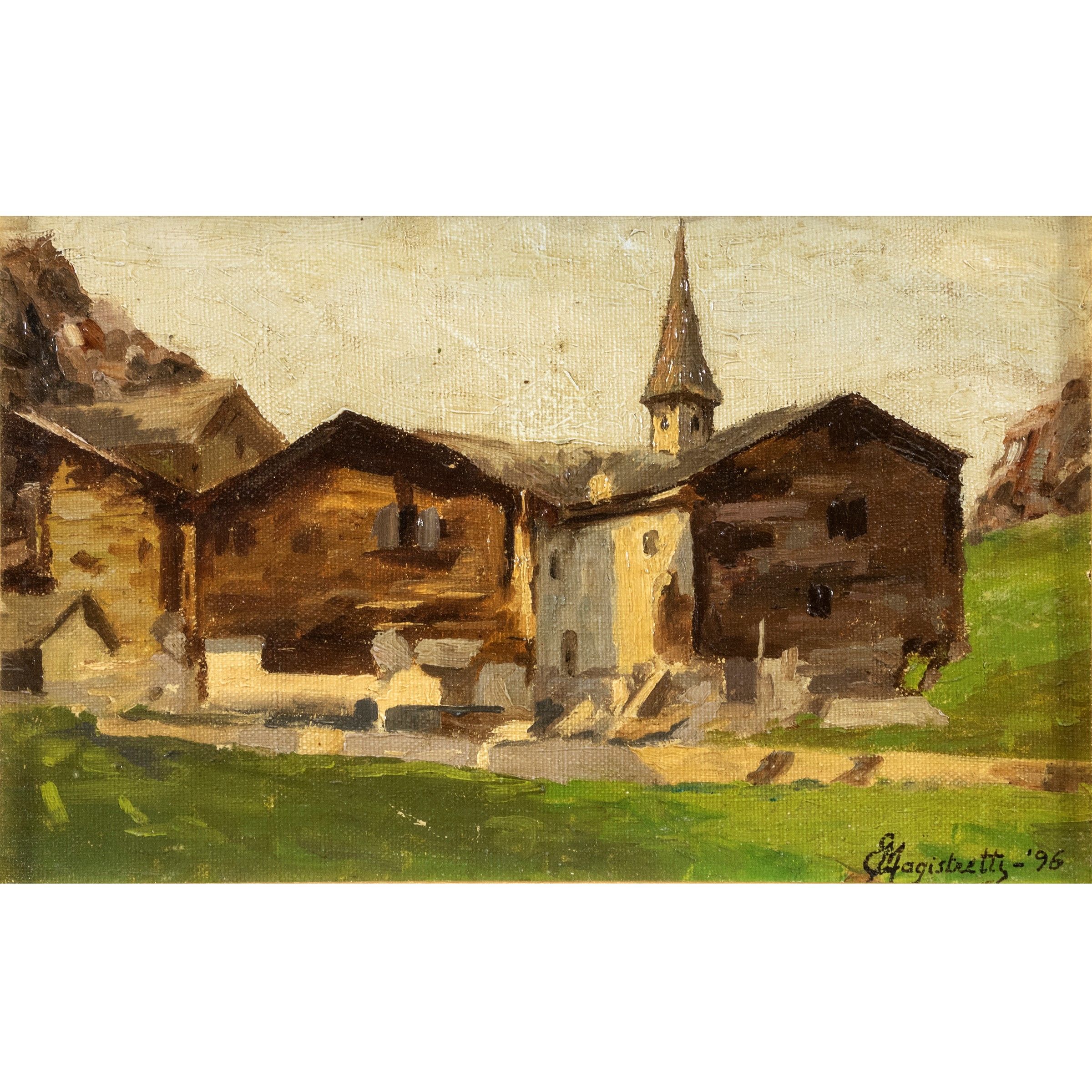 Milano 1851 - 1936 Villaggio di montagna, 1896, olio su tela, firmato e datato in basso a destra, entro cornice