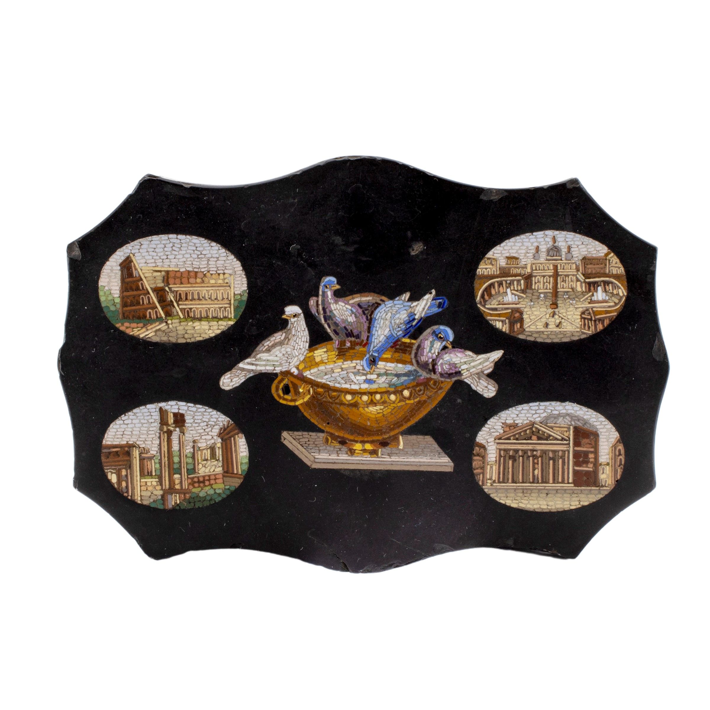 Roma, XIX Sec. di forma sagomata, raffigurante Vedute di Roma con le Colombe di Plinio, difetti