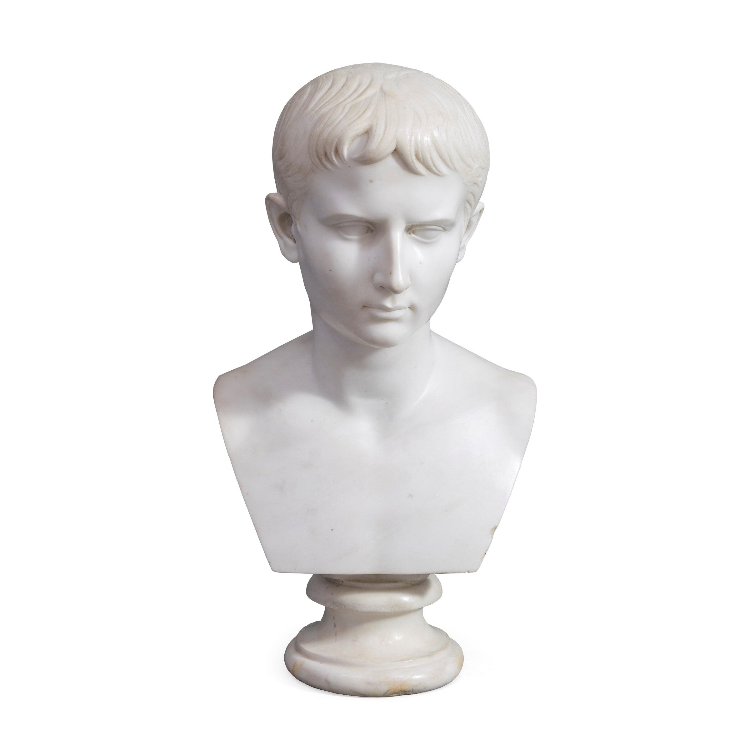 Roma, 1849 - 1918 Il giovane Augusto, busto ritratto realizzato in marmo bianco statuario, firmata e datata TADOLINI. ROMA. 1884