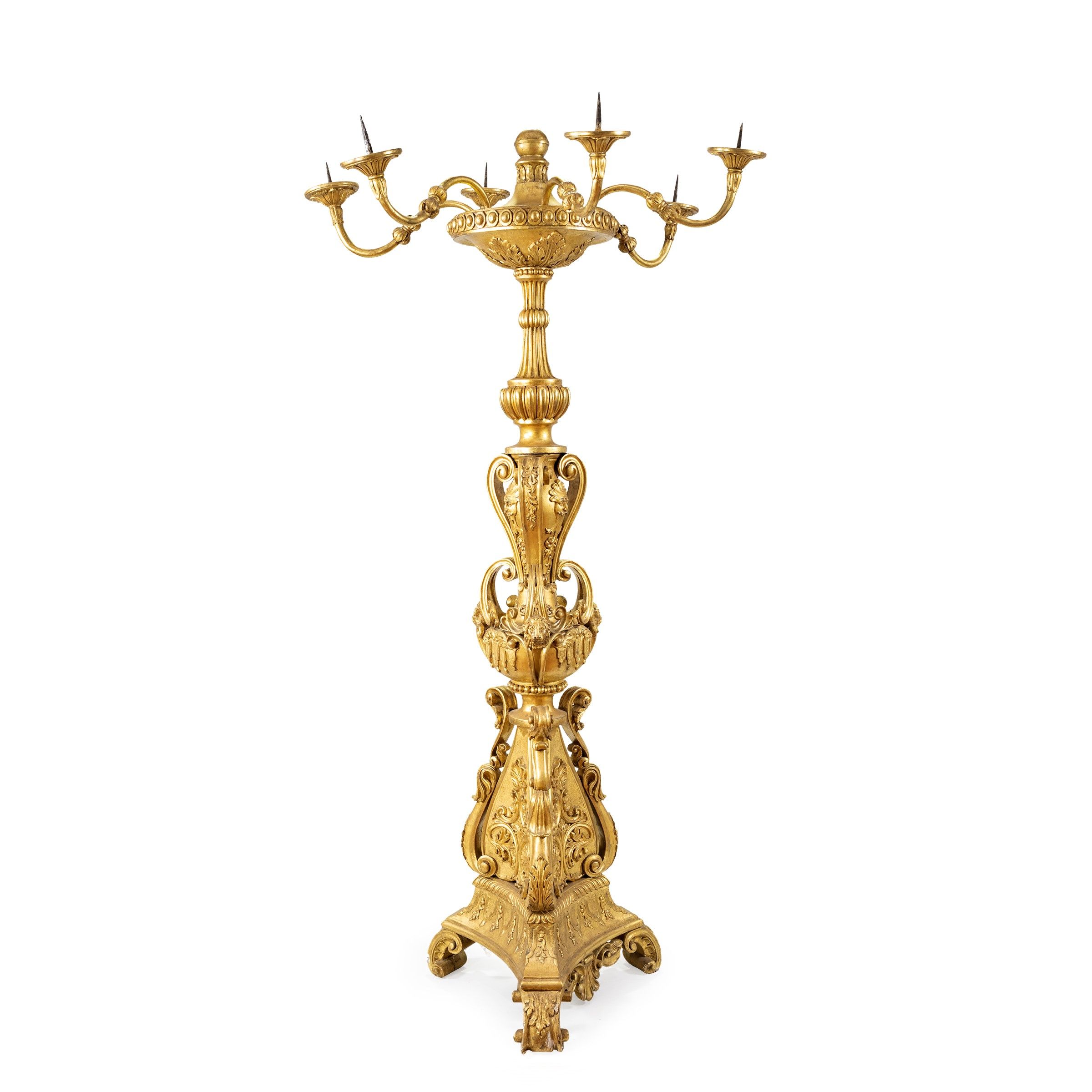 Grande torciere in legno dorato a 6 bracci  - Asta Arredi, Sculture, Dipinti Antichi e del XIX Secolo - Associazione Nazionale - Case d'Asta italiane
