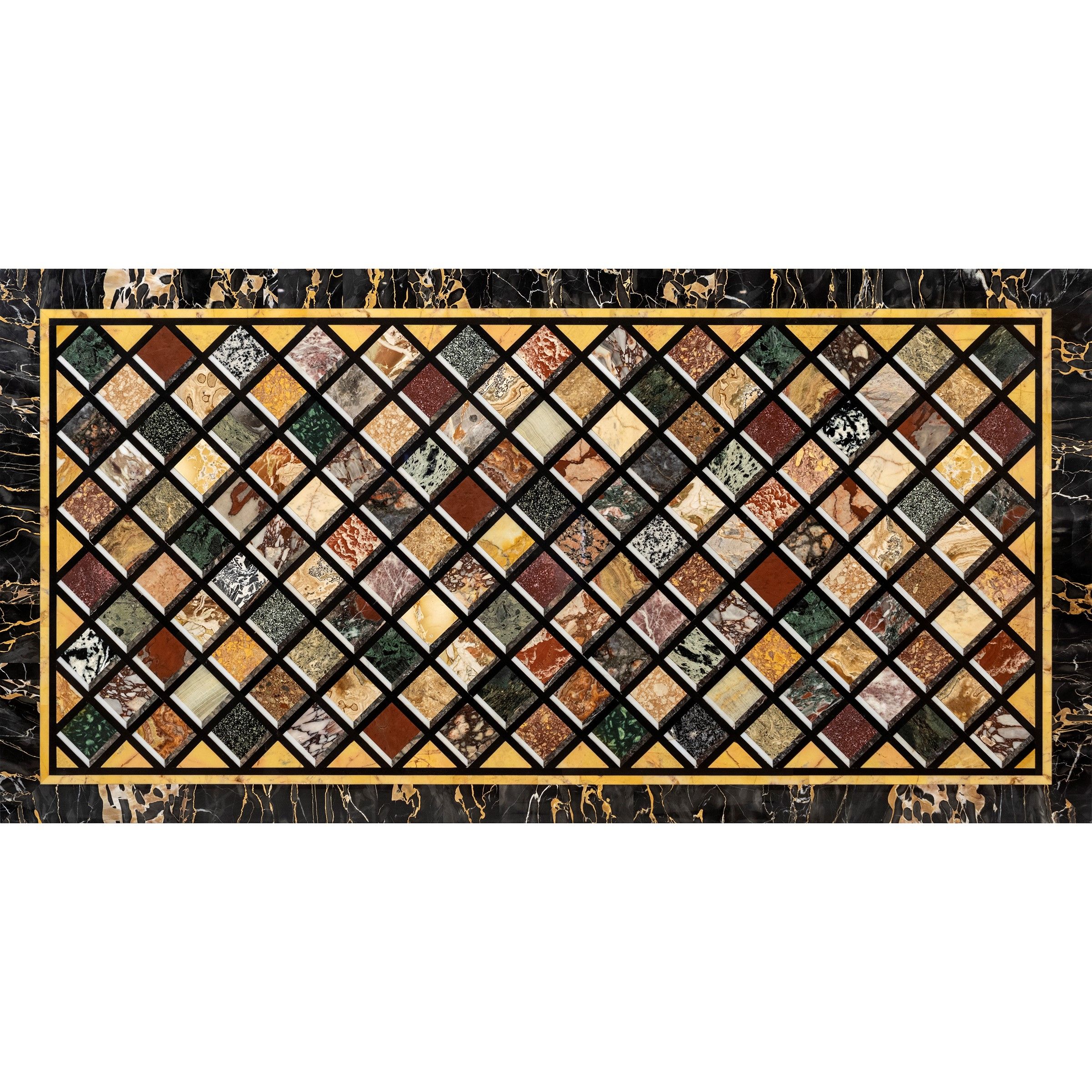 Italia, XX Sec. corpo rettangolare lastronato in marmi vari, bordo in nero del Belgio, giallo di Siena e Portoro