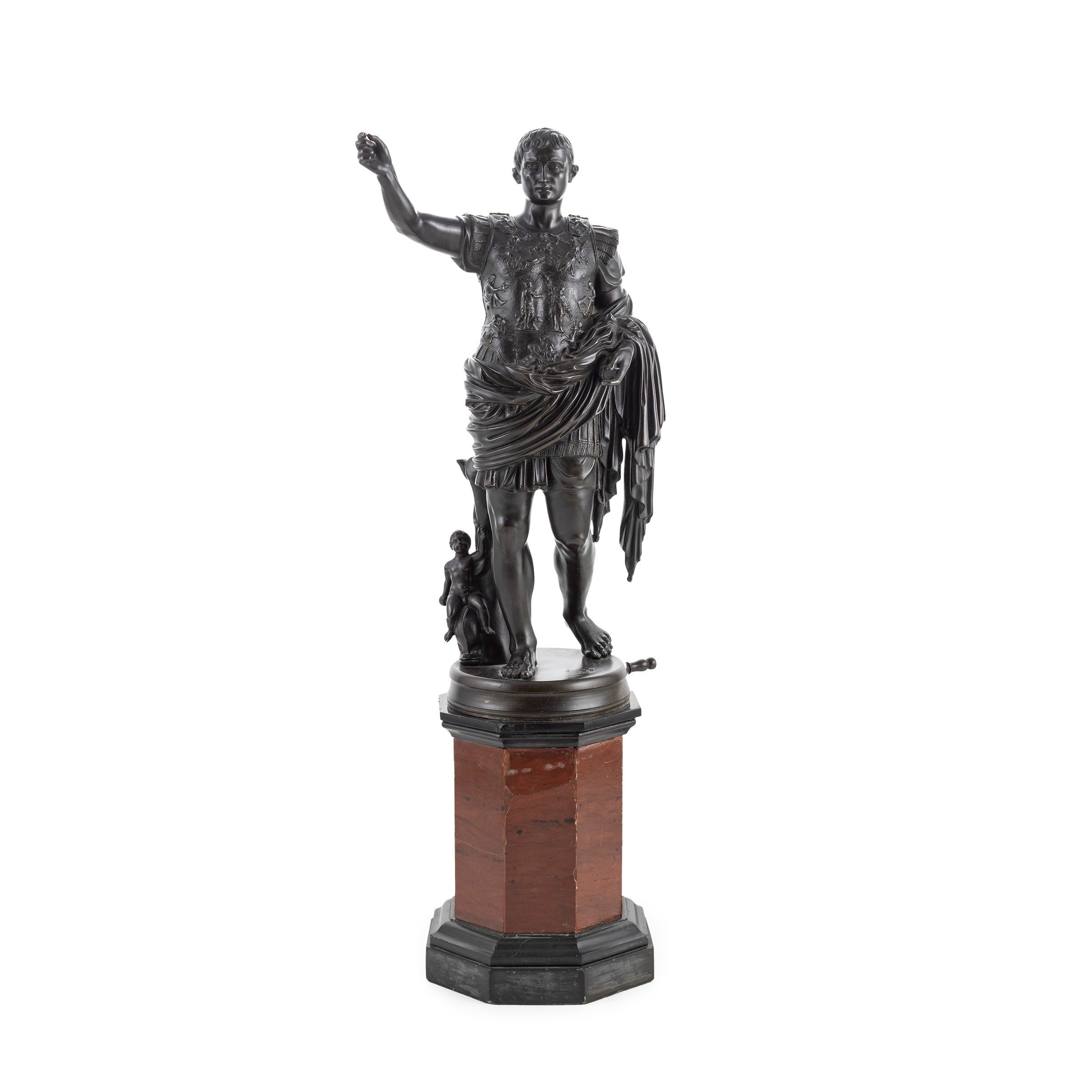 Italia, XIX Sec, L'Augusto di Prima Porta, poggiante su base ottagonale in marmo rosso antico e nero del Belgio, lievi difetti
