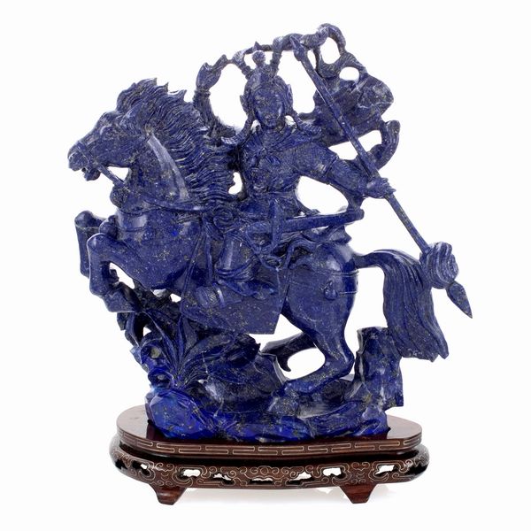 XX Sec. scolpito a raffigurare un cavaliere orientale, poggiante su base sagomata in legno