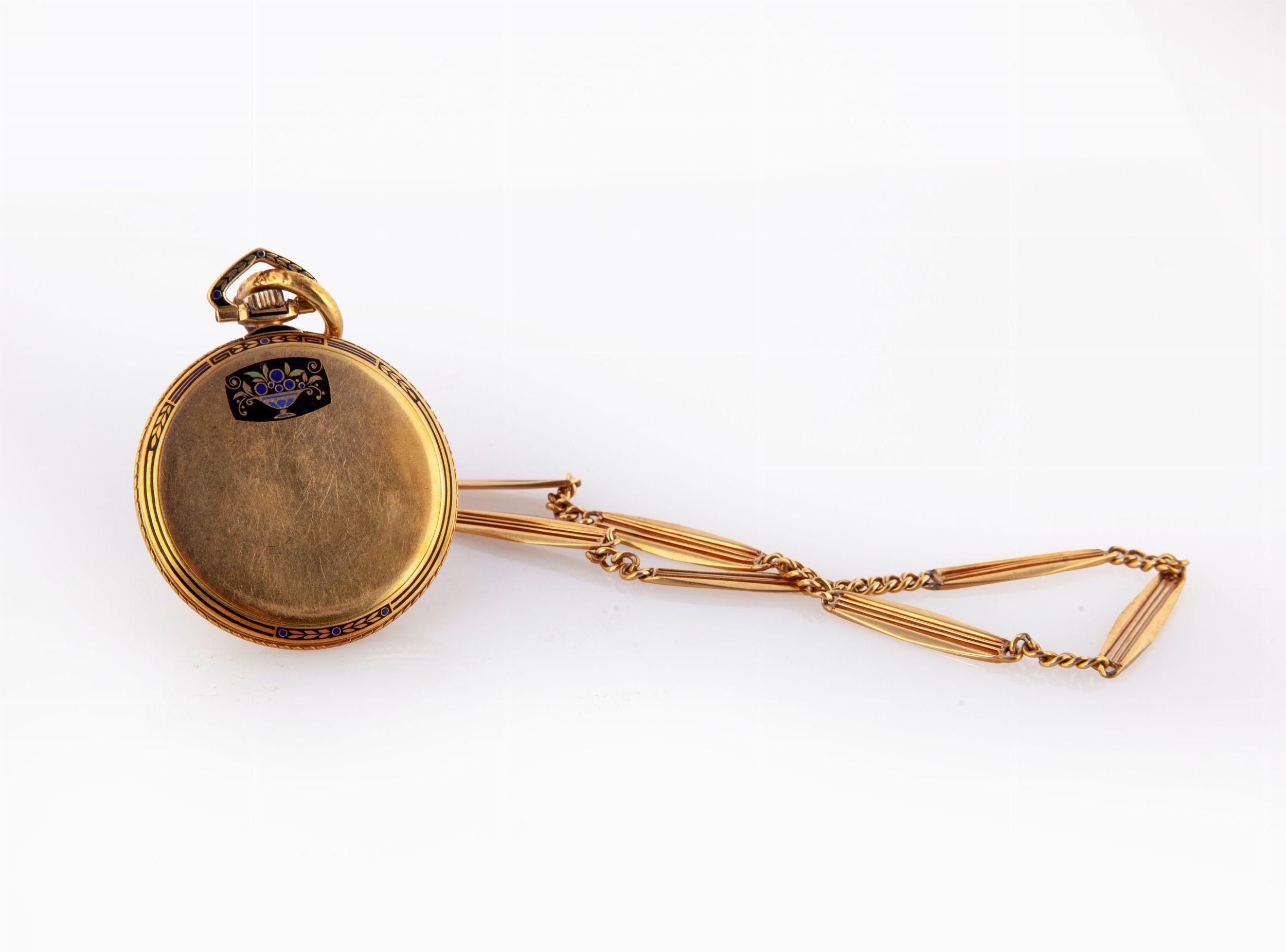 Longines - Orologio da tasca da uomo in oro 18 kt e smalto con catena in metallo. [..]