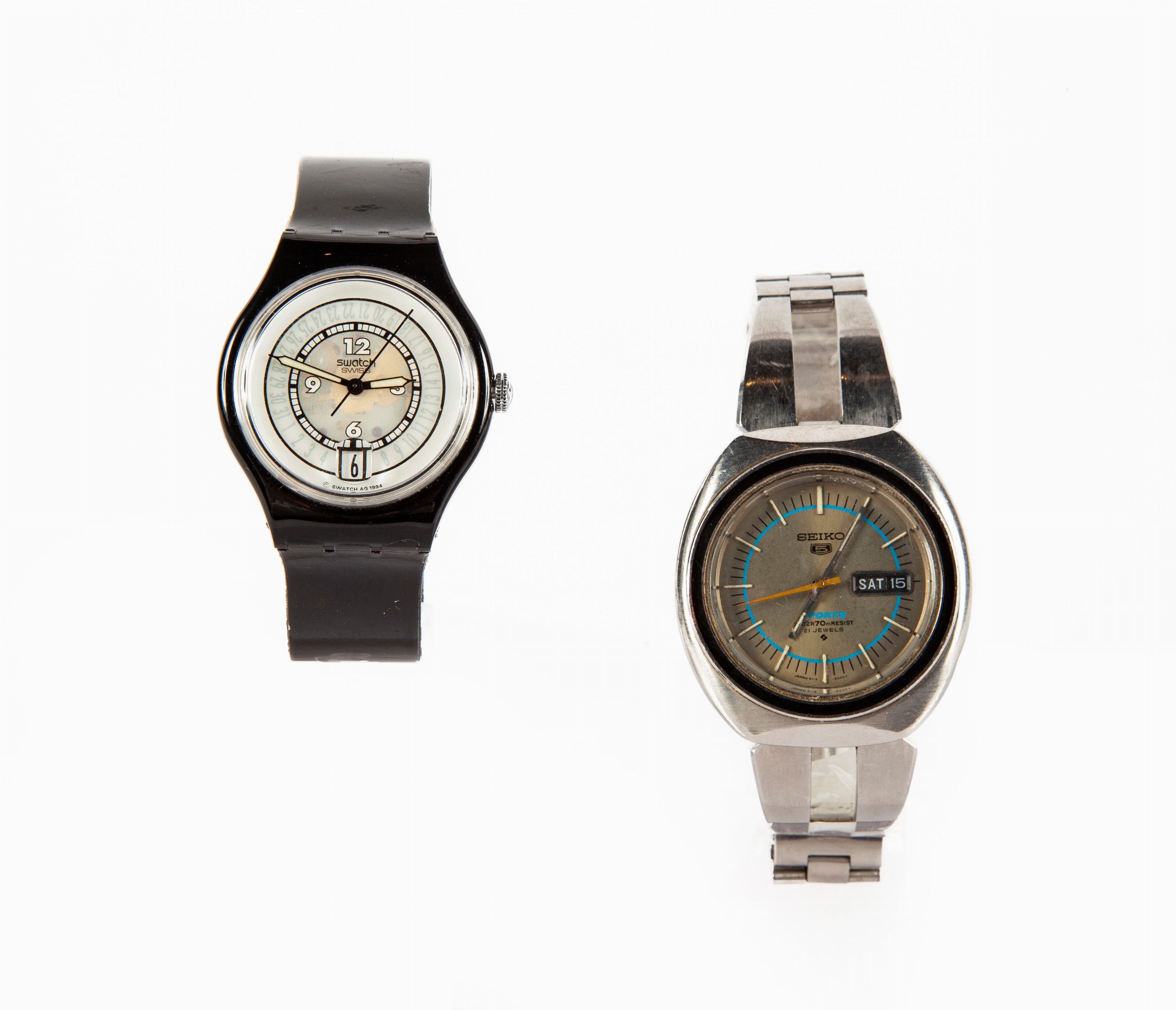 1970 Insieme nel lotto: Swatch Automatic Calendario - Orologio da polso da uomo in plastica, meccanico automatico con calendario Diam. mm 37