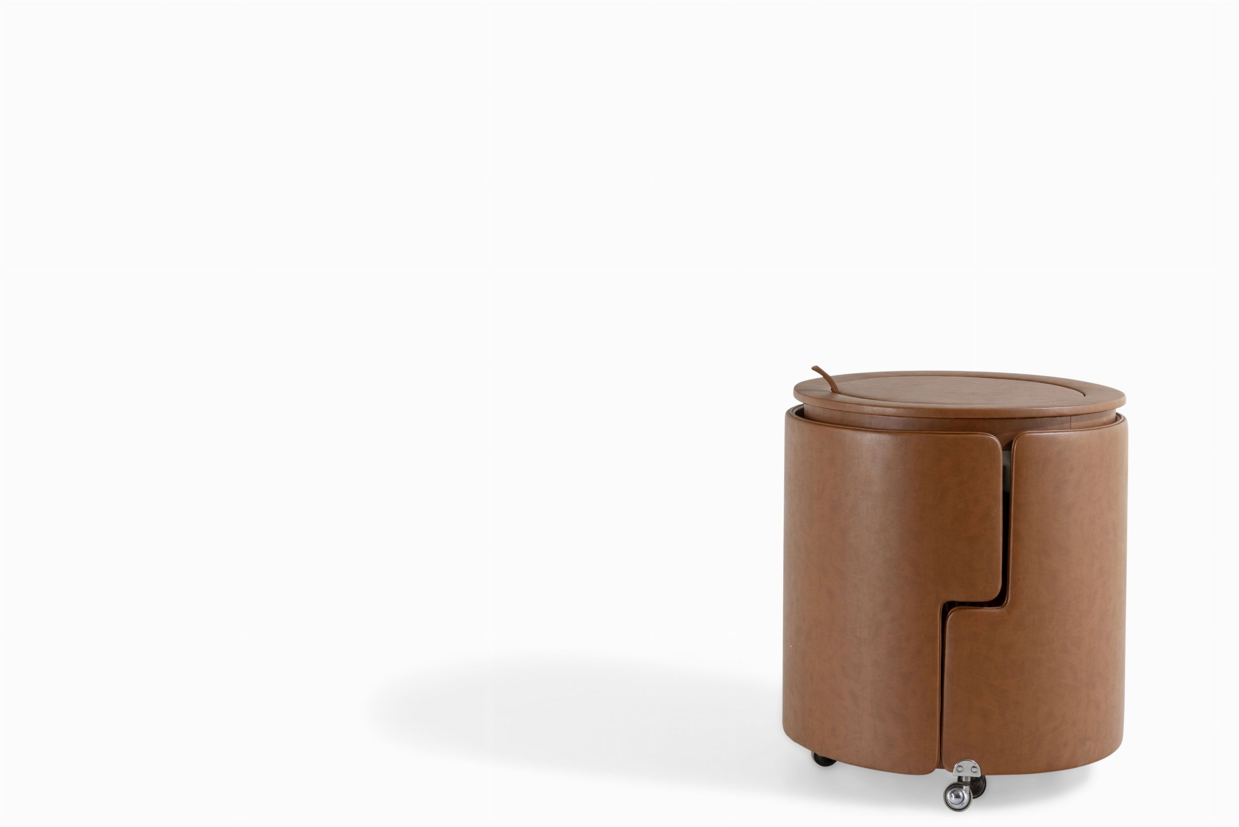 Struttura in legno con rivestimenti in pelle, metallo cromato, cristallo specchiato e abs.
