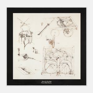 cm 90 x 90 12 foulard in twill di seta stampati con disegni di Leonardo Da Vinci, rifinito con bordo arrotolato [..]