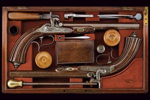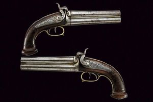 Francia, lunghezza 42 cm. Metà del XIX Secolo Canne rigate, ottagonali, damascate e brunite, con basi incise [..]