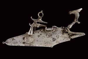 Brescia, lunghezza plate 22,4 cm. 1630 - 1640 circa Cartella piatta di tipo arcaico, con bordi scantonati. La [..]