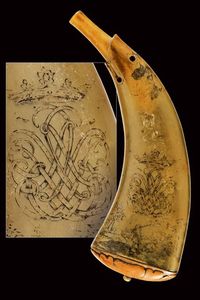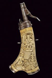 Germania, altezza 20.5 cm. 1590 circa Corpo in corno di cervo a base biforcata, la parte anteriore finemente [..]