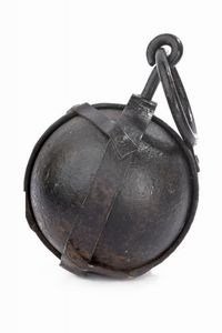Europa, diametro 18 cm. XVII/XVIII secolo Palla sferica in ferro, tenuta da bande rivettate e munite di un grande [..]