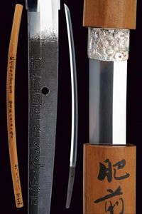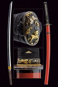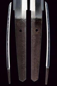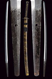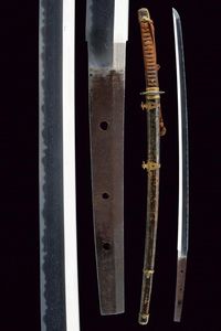 Giappone, lunghezza 75 cm. Lama Shinogi-zukuri, Iori-mune. Nagasa: 55 cm. Hamon e hada ben visibili. Nakago-jiri: [..]