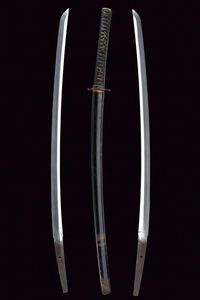 Giappone, lunghezza 97 cm. Lama Shinogi-zukuri, Iori-mune. Futasuji-hi. Nagasa: 71,5 cm. Hamon e hada ben visibili. [..]