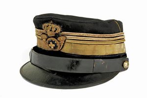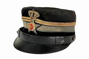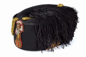 Regno d'Italia, altezza 14.5 cm. 1905 In fine panno nero con fascia in velluto nero con profilature rosse, effetti [..]