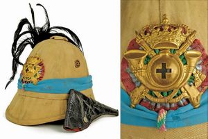 Regno d'Italia, altezza 19.5 cm. 1915 - 1920 Corpo in sughero rivestito in lino color panna, fregio anteriore [..]