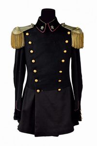 Regno d'Italia, altezza jacket circa 74 cm. 1903-1914 In panno bruno con paramani e colletto in velluto profilati [..]