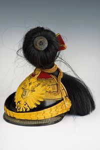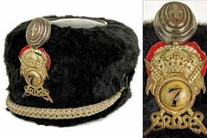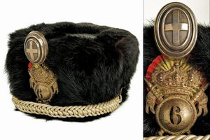 Regno d'Italia, altezza 11.5 cm. Fine del XIX Secolo In pelliccia nera con imperiale in cuoio, cordellina intrecciata, [..]
