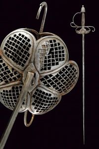 Francia, lunghezza 102.5 cm. metà del XVII Sec. Lama dritta a due fili; la prima parte di sezione esagonale, [..]