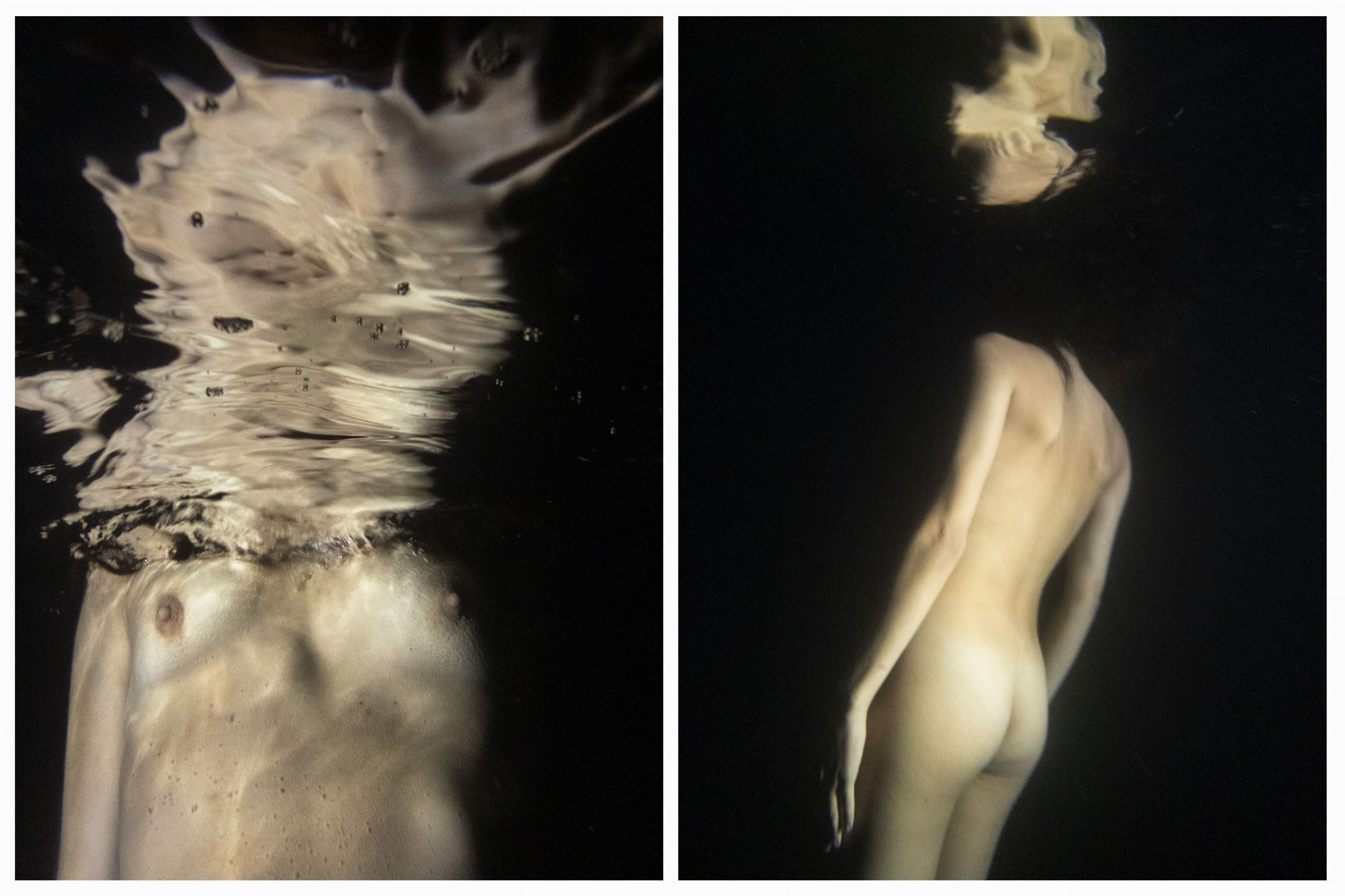Per la serie Respiro (2020 - 2023, Francia, Italia, Grecia) ho collocato i miei soggetti nel Mar Mediterraneo, catturandoli nel cuore della notte. Gli scatti sono realizzati in apnea, invertendo il punto di vista. Le figure sott'acqua sembrano come in animazione sospesa, come esemplari conservati in barattolo, come creature che possono da un momento all'altro riprendere vita. Il buio e l'acqua sono lo spazio-tempo per trasportare la nostra ambivalenza, osservando ciò che un corpo può fare in una dimensione aliena, dove le leggi della fisica cambiano le regole e i singoli elementi diventano universali: istinto, sopravvivenza, respiro. In definitiva, la serie cerca di mettere in mostra il nostro io interiore: congelato tra desideri contrastanti, bloccati tra respiri dimenticati che muoiono per sempre per vivere. (Martina Cirese)