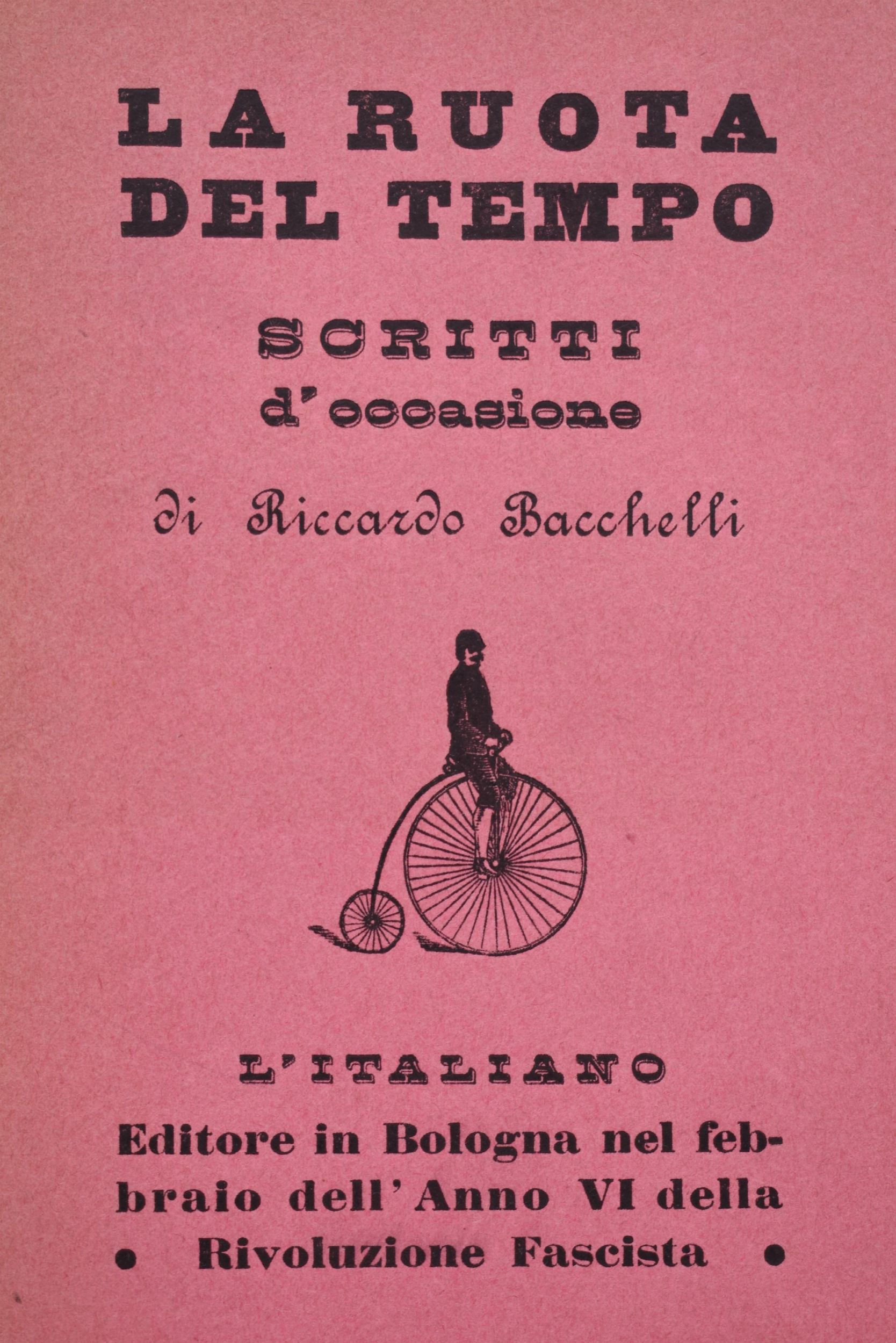 Prima edizione. Esemplare n. 251 di 425 copie su carta bambagia; con un ritratto f.t. dell'autore eseguito da Giorgio Morandi. Sovracoperta conservata con fregio di uomo su un velocipede. Primo volume pubblicato dal marchio bolognese, a cura di Leo Longanesi.