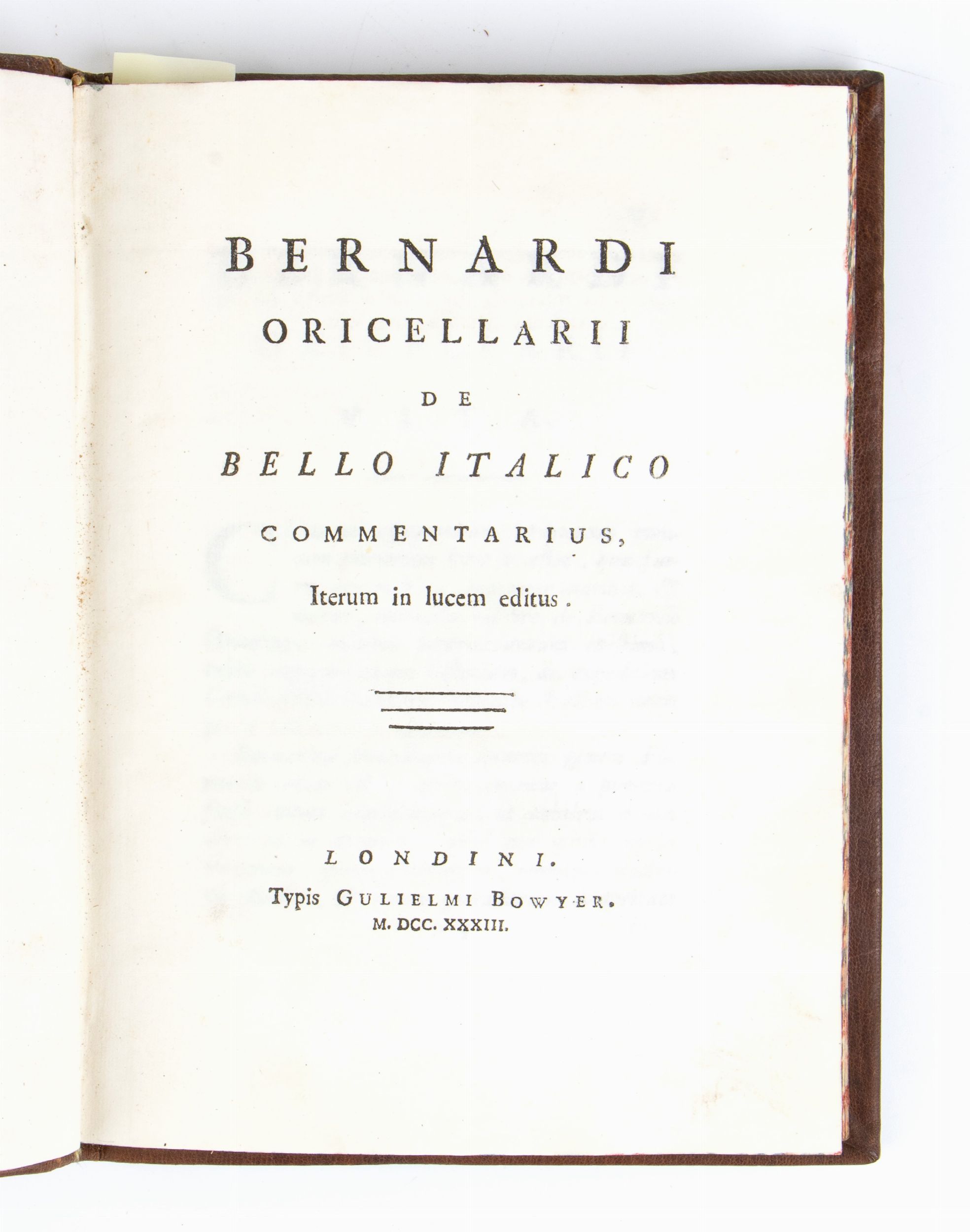 BERNARDO RUCELLAI. De bello italico, De bello pisano. Londra Bowyer 1733