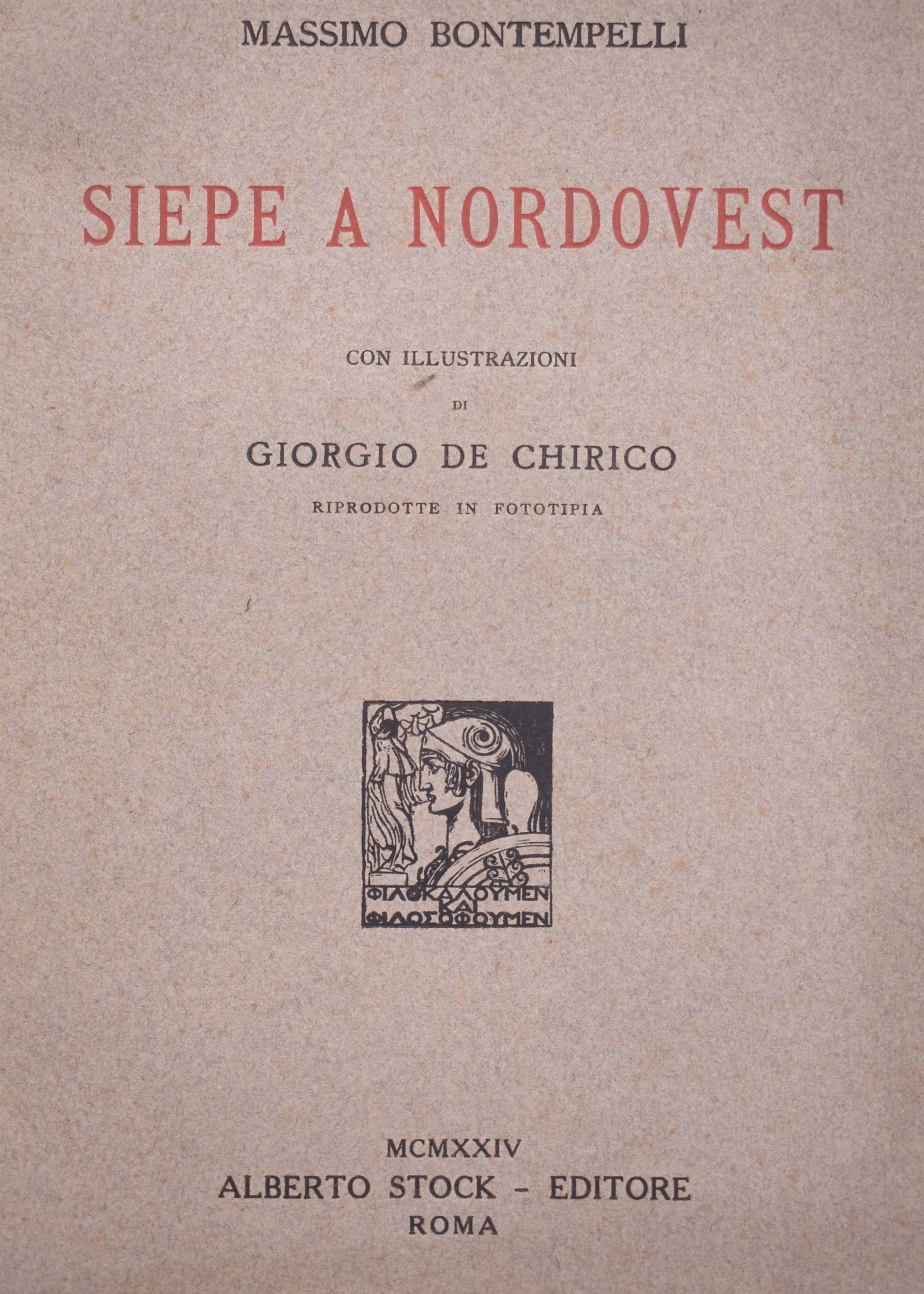Prima edizione (per l'esattezza si tratta di una delle copie residue del 1922, ricopertinata e rimessa in commercio da Alberto Stock). Tiratura numerata, es. n. 329/444. Con 11 illustrazioni di Giorgio De Chirico riprodotte in fototipia e uno spartito musicale in appendice. Volume con testo intonso, con mancanze al dorso.