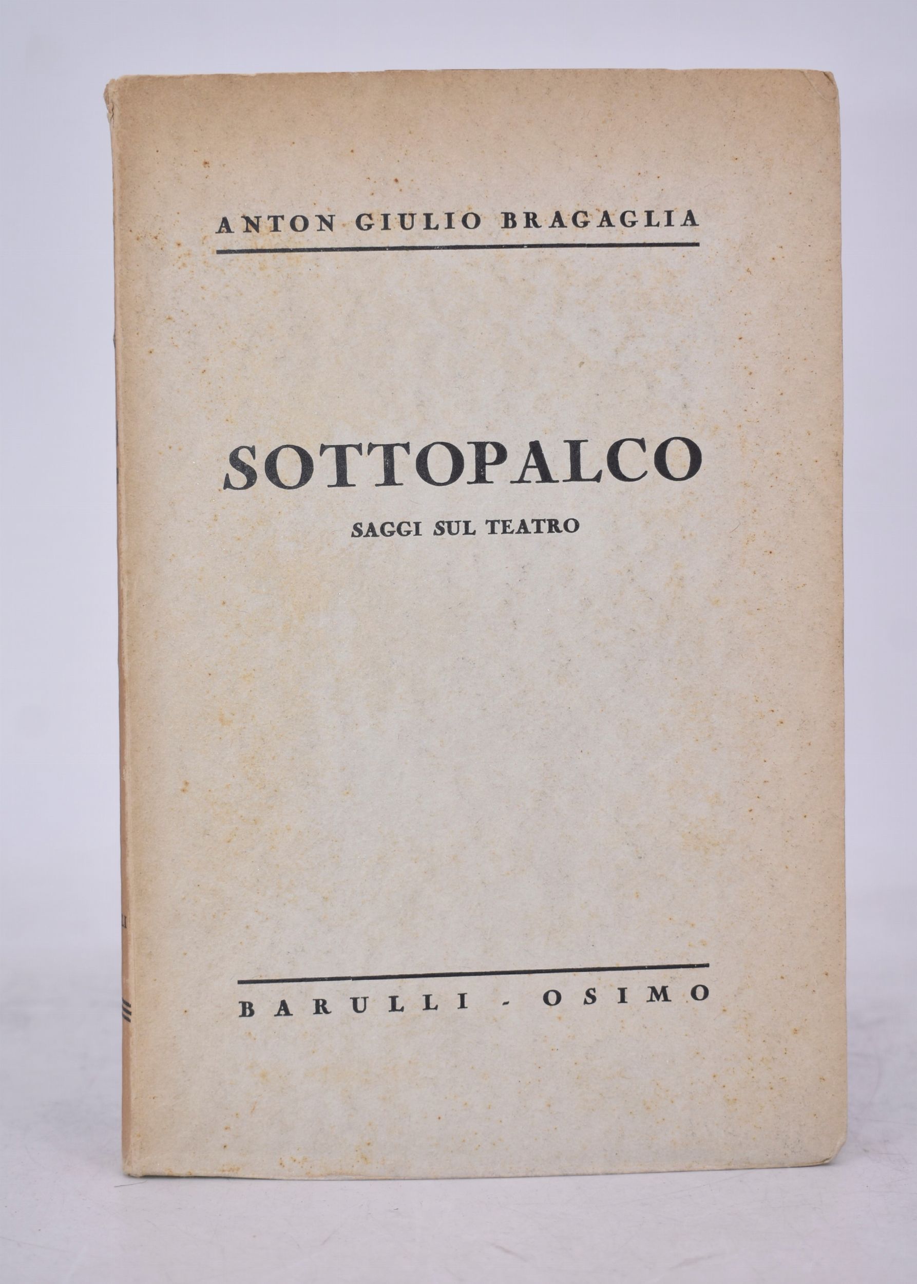 BRAGAGLIA, Anton Giulio. SOTTOPALCO. SAGGI SUL TEATRO. 1937.