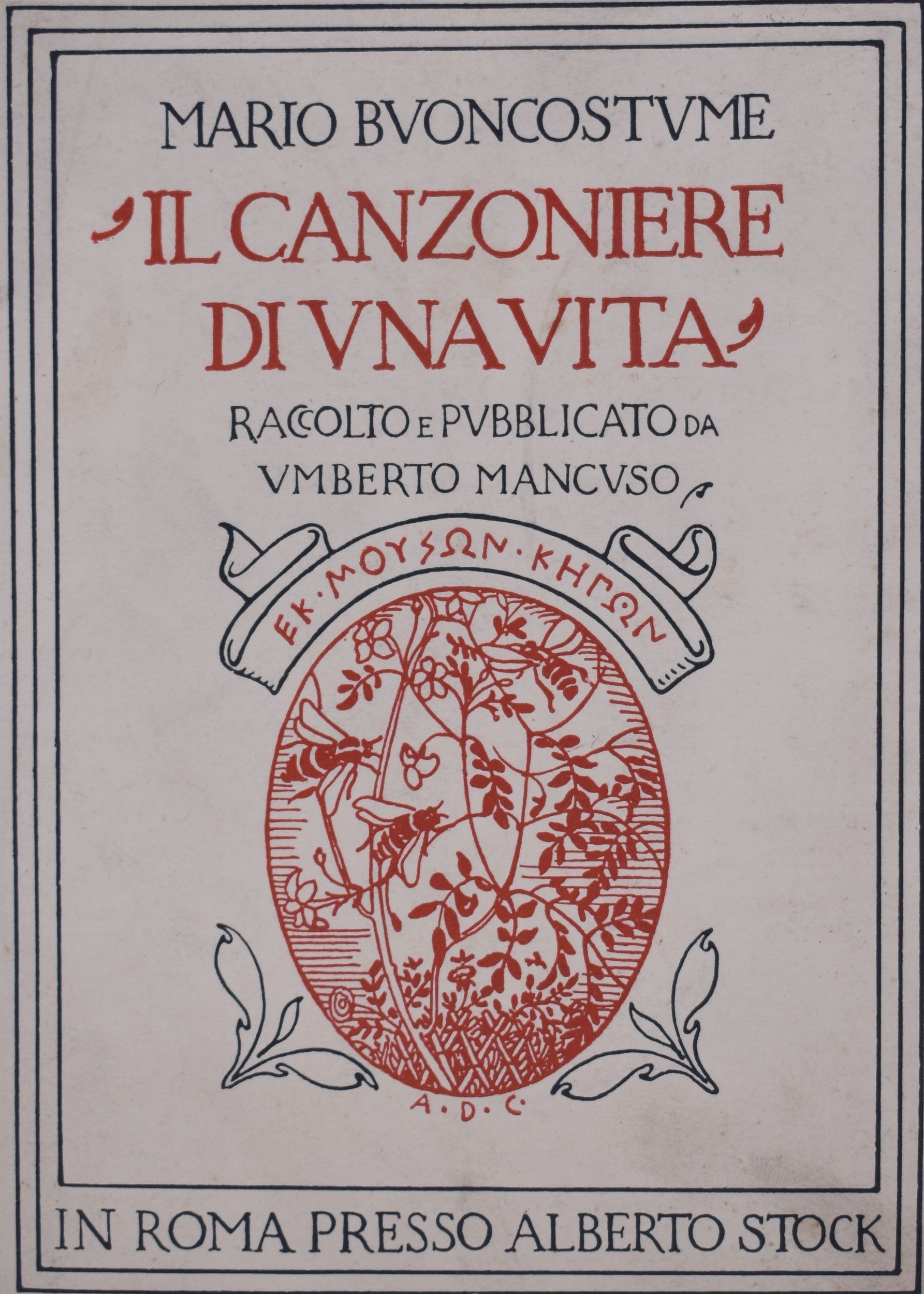 BUONCOSTUME, Mario. IL CANZONIERE DI UNA VITA RACCOLTO E PUBBLICATO DA UMBERTO MANCUSO. [..]