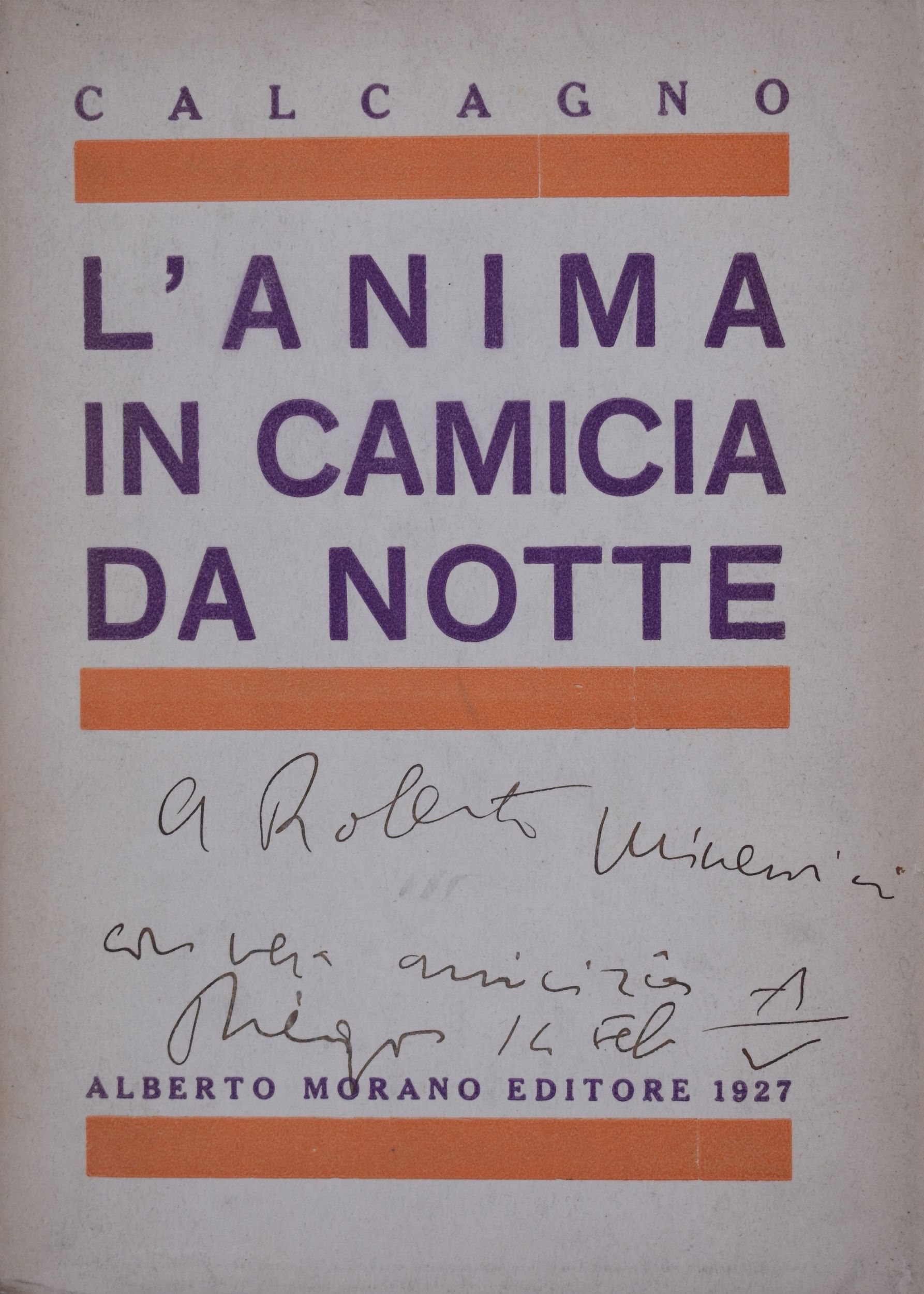 Prima edizione. Opera prima dello scrittore di Ercolano (1901-1979). Con un ritratto di Calcagno (disegno di Möller) in ultima c. Esemplare con dedica dell'autore manosc. al piatto, datata Anno V.