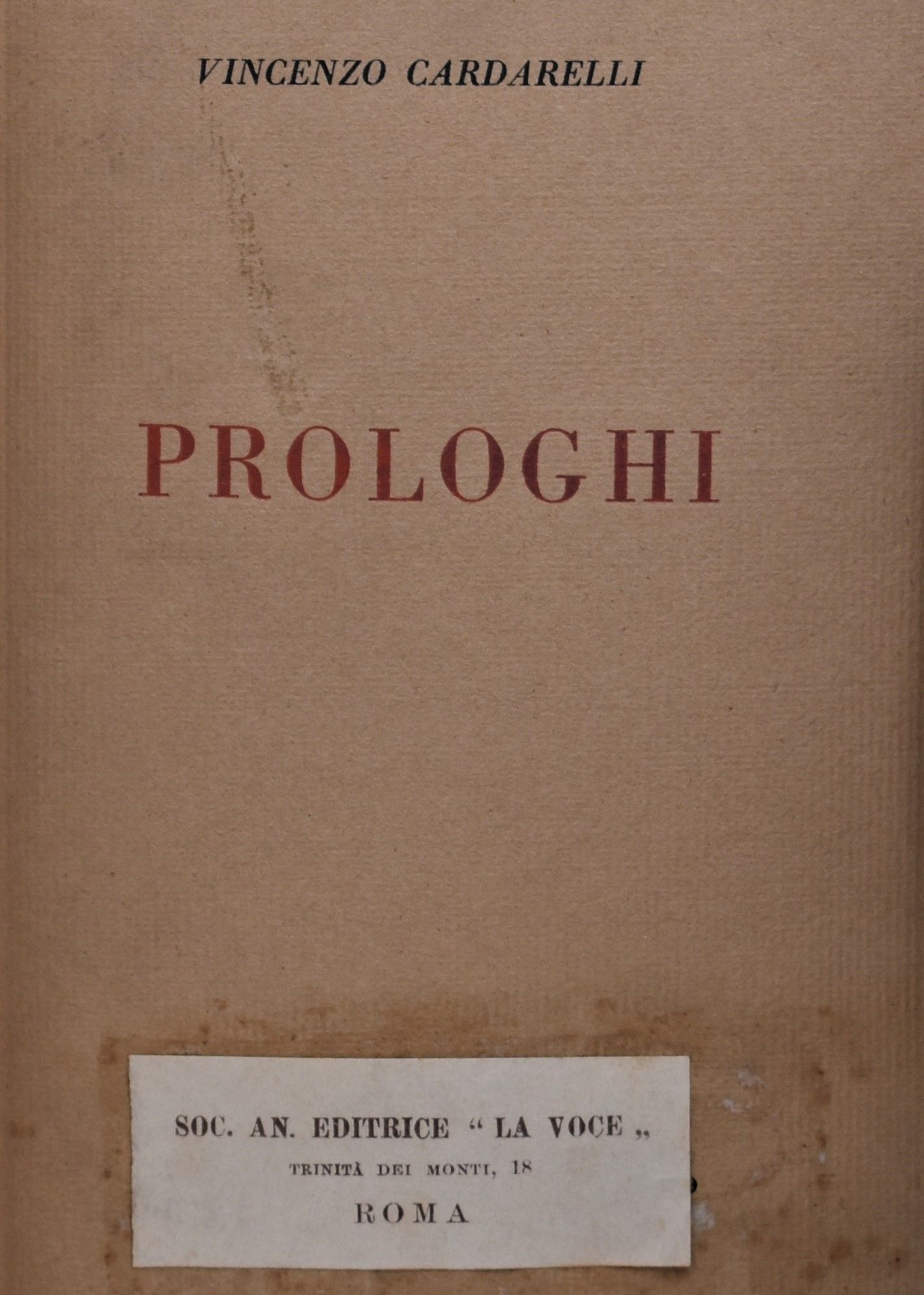 Opera prima di Cardarelli. Prima edizione, finito di stampare il XXIX Febbraio MCMXVI. Tiratura di 350 esemplari numerati, es. n. 252. Legatura artistica in mezza pelle marocchino con angoli, taglio dorato. Brossura editoriale conservata, con tassello editoriale de “La Voce” applicato al piatto. Esemplare conservato in un elegante cofanetto marmorizzato.