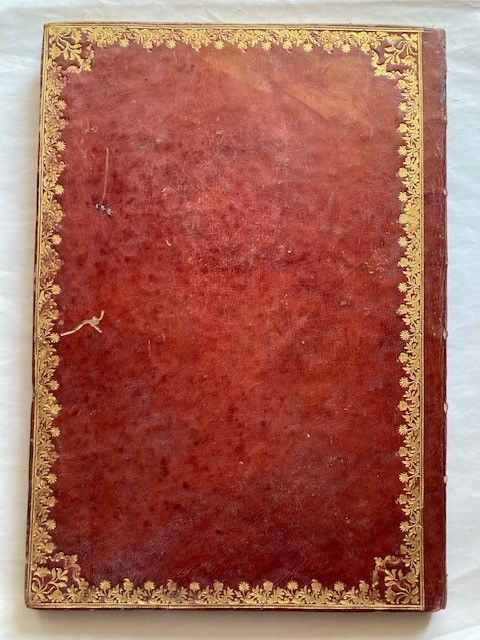Folio (il foglio 327 x 220), bella legatura coeva in marocchino rosso con bordi floreali e nervi dorati (piccolo foro in basso), sguardie con carta colorata coeva, tagli dorati, esemplare in buono stato.