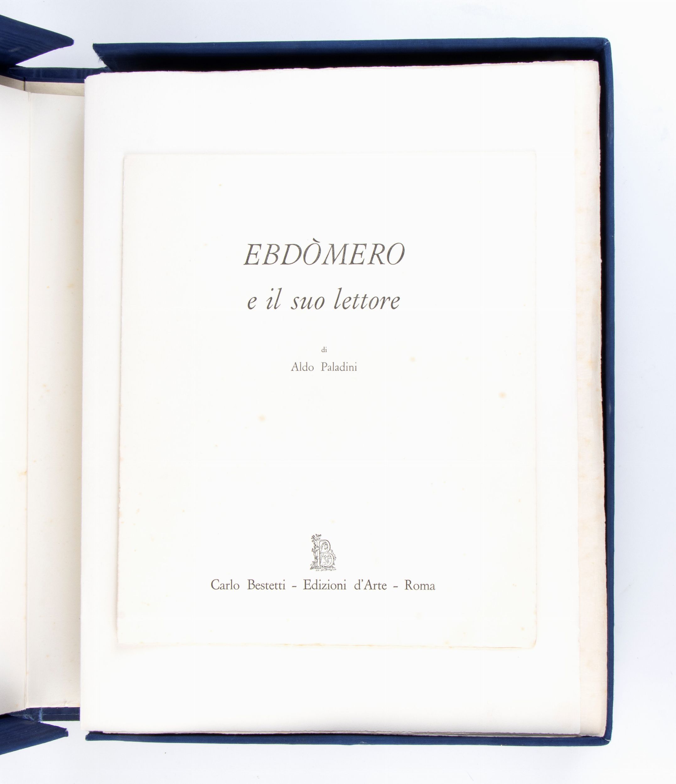 Cofanetto in tela blue contenente il volume nella sua brossura editoriale.