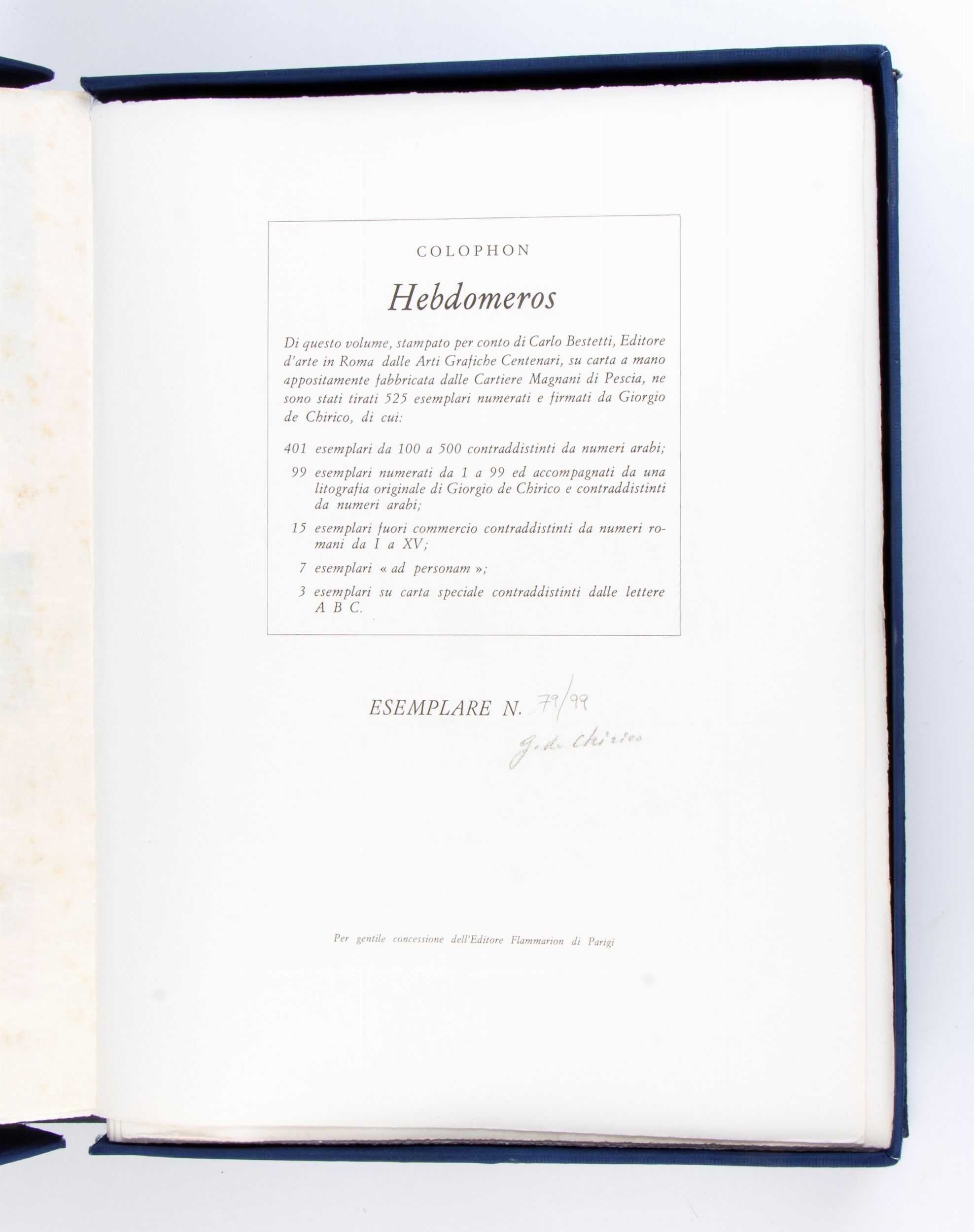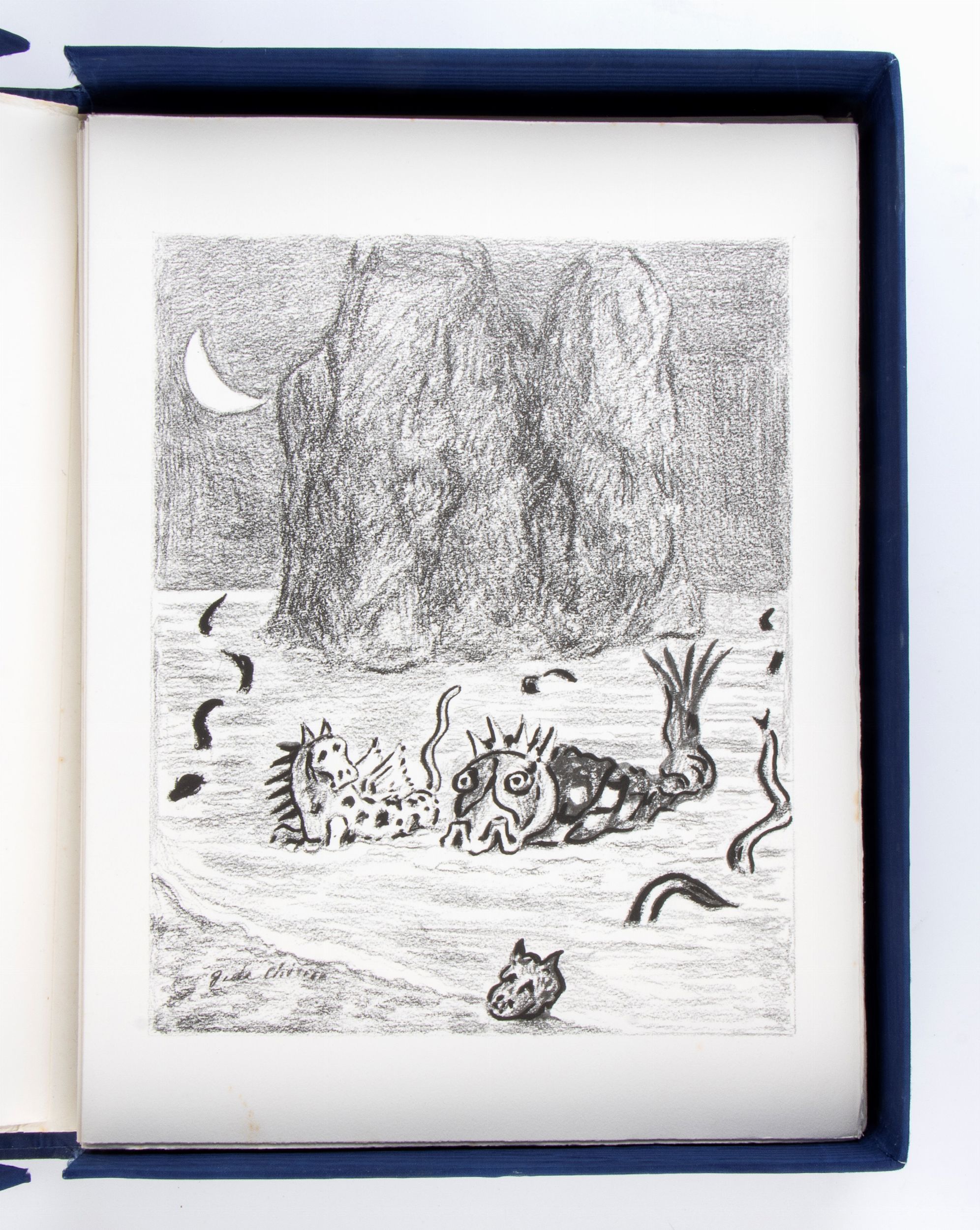 Esemplare n. 77/99 accompagnato da una litografia originale 40x30 cm del Maestro. Inoltre la nostra copia presenta un disegno originale dell'autore, una testa di cavallo, con dedica a Gianni Piccinini.