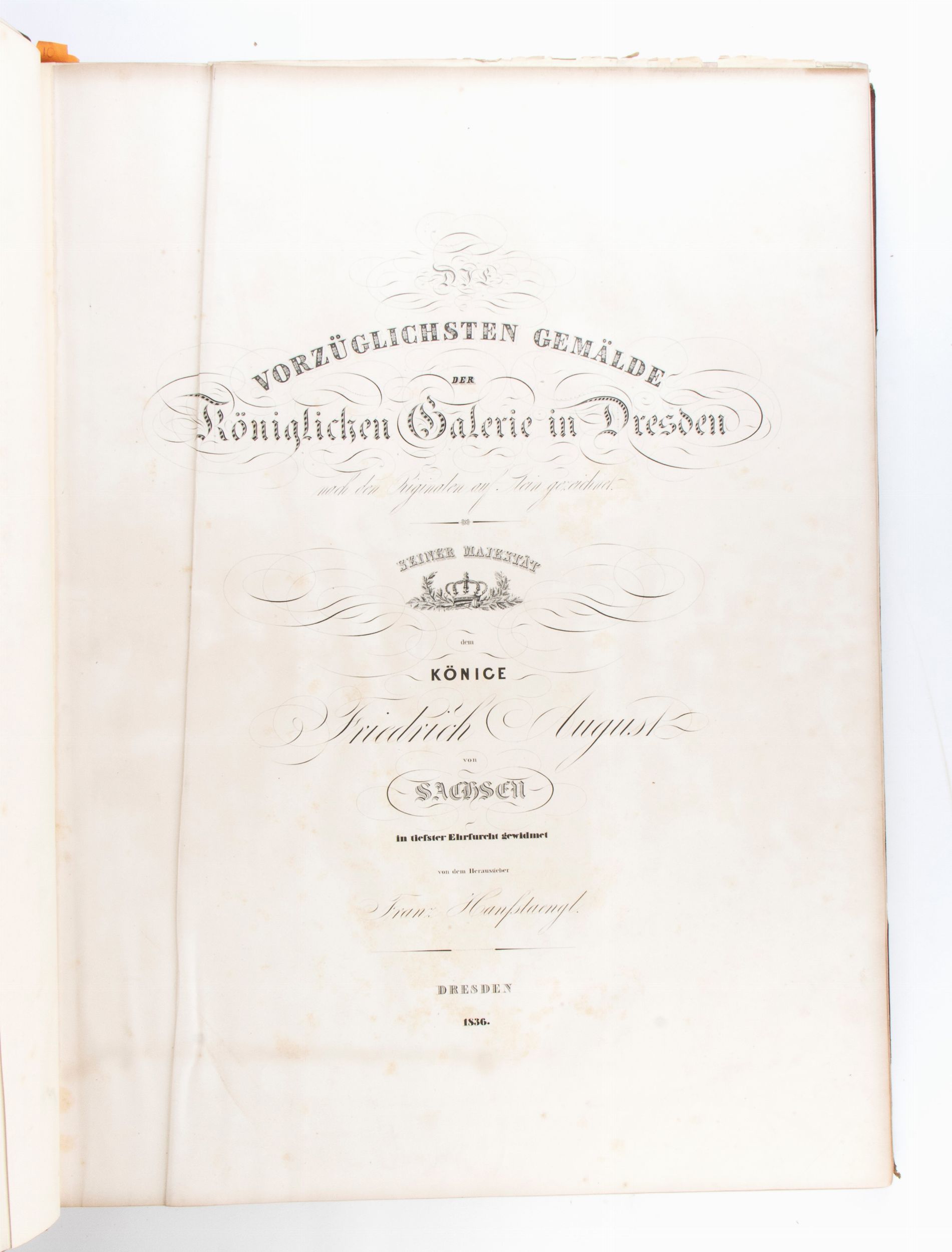 Si tratta della pubblicazione in tre volumi di Franz Hanfstängl di circa 200 riproduzioni litografiche dei più importanti dipinti della Collezione Reale di Dresda, pubblicata a Dresda nel 1836 (anche se alcune tavole sono datate tra il 1835 e il 1840).