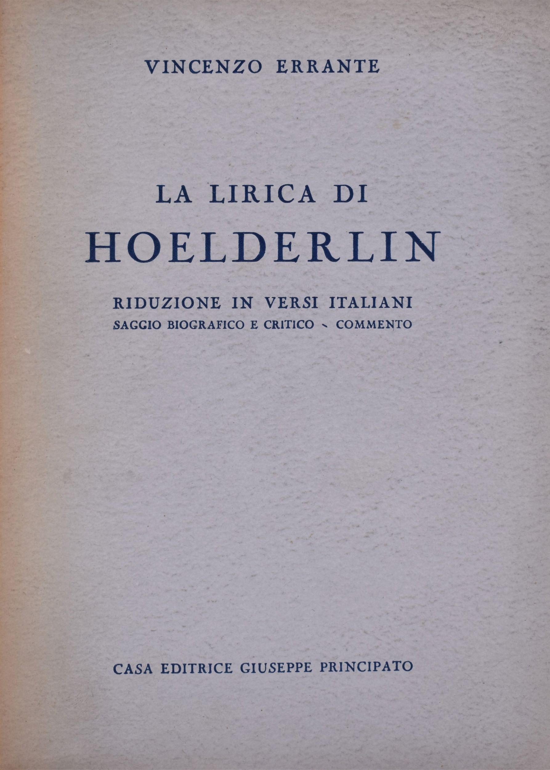ERRANTE, Vincenzo. LA LIRICA DI HOELDERLIN. 1940.