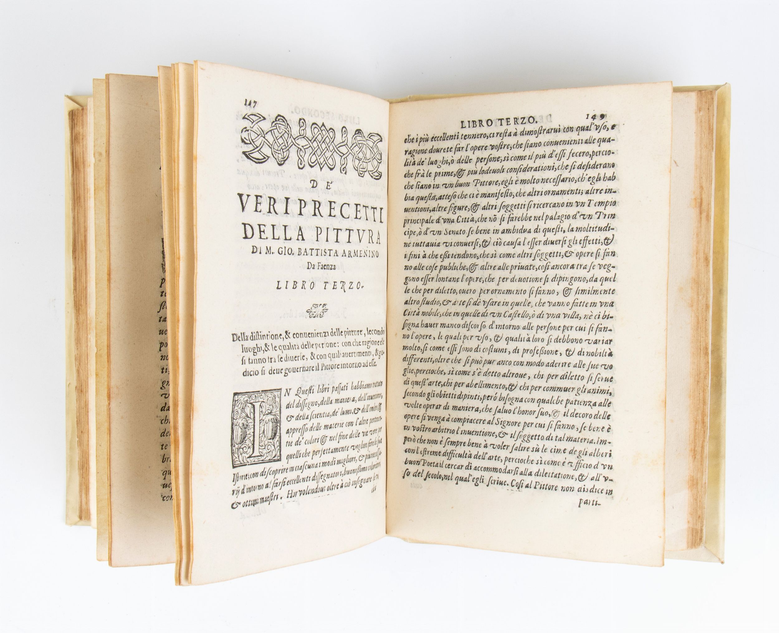 Trattato pratico sul disegno e sulla tecnica pittorica, scritto dal pittore faentino. Armenini. Contiene aneddoti e altre notizie su artisti e opere d'arte. Importante per lo studio della pittura del Cinquecento. Una delle fonti piĂ¹ importanti per la conoscenza delle botteghe dell'artista del periodo manierista in Italia.