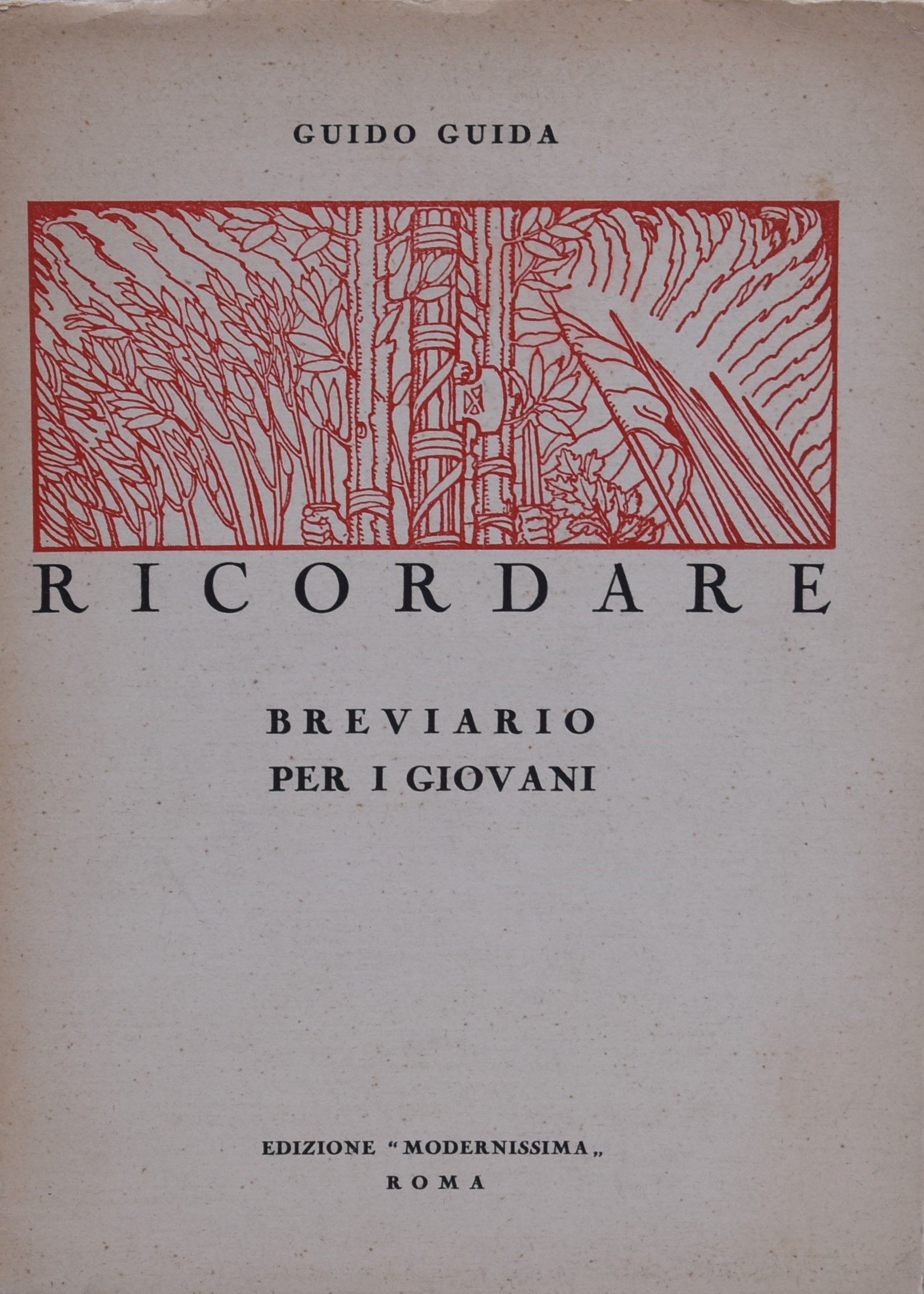 Prima edizione, brossura con ill. a colori al piatto e fregi n.t. di Adolfo De Carolis. Esemplare con dedica autografa dell'autore. * Esemplare proveniente dalla biblioteca privata di Adolfo De Carolis.