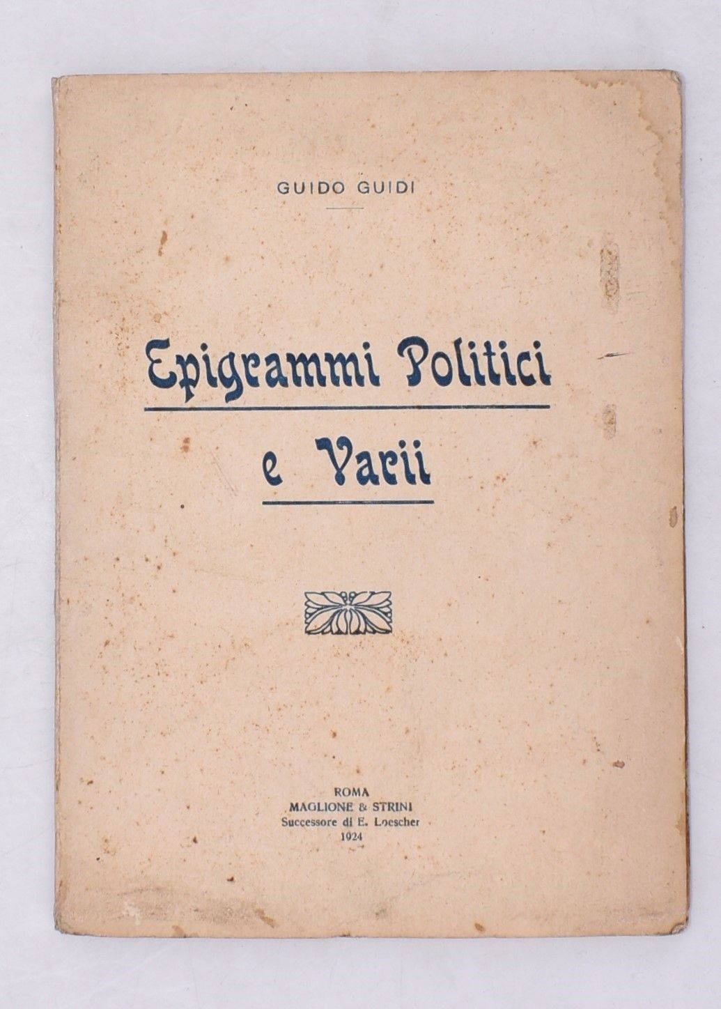 GUIDI, Guido. EPIGRAMMI POLITICI E VARII. 1924.