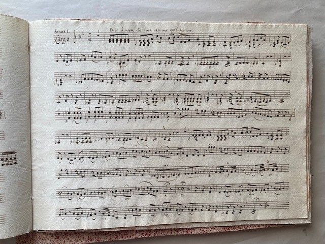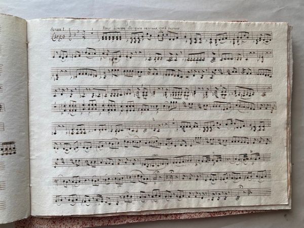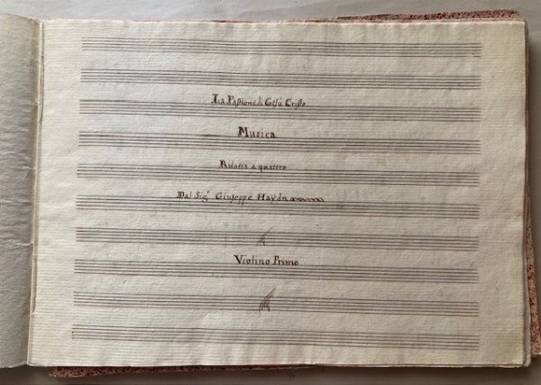 Una bellissima copia manoscritta contemporanea della Sinfonia n. 49 in fa minore (Hoboken I/49) scritta nel 1768 da Joseph Haydn durante il suo periodo Sturm und Drang. È popolarmente conosciuta come “La passione”. La partitura della sinfonia è tipica di Haydn in questo periodo: due oboi, fagotto, due corni e archi.